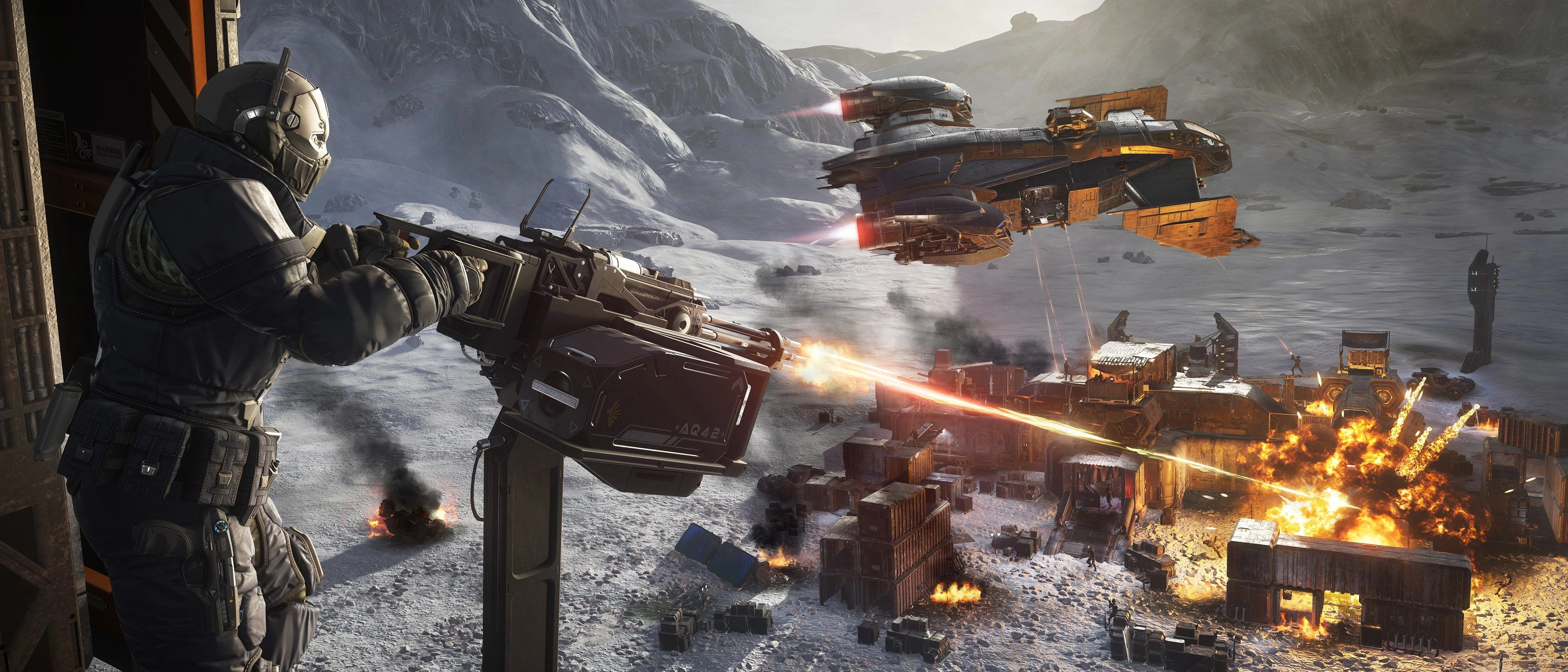The Drake Cutlass Steel is a troop transport model in the Cutlass series with an additional remote turret, more missiles, and 5 door-mounted Gatling guns. With 18 jump seats for armed and armored passengers, the Cutlass Steel is designed to rapidly insert troops into an area while providing fire support for them. The basic specifications are identical to those of the Cutlass Black but lacking any cargo space due to the installation of jump seats and additional turrets. Each jump seat is equipped with a single weapons rack for stowing FPS weapons. The rear turret is controlled by the co-pilot. The door-mounted gatling guns will be replaceable with other compatible mounted weaponry in the future, although this functionality is not yet implemented. It’s a jungle out there. Like it or not, we live in a dog-eat-dog universe. Away from the so-called protection of the UEE, the law of the jungle prevails – whoever has the most guns and most muscle makes the rules. Drake has your back in both departments with the Cutlass Steel. Equal parts daunting dropship and menacing gunship, the newest member of Drake’s flagship family brings the heat and then some.