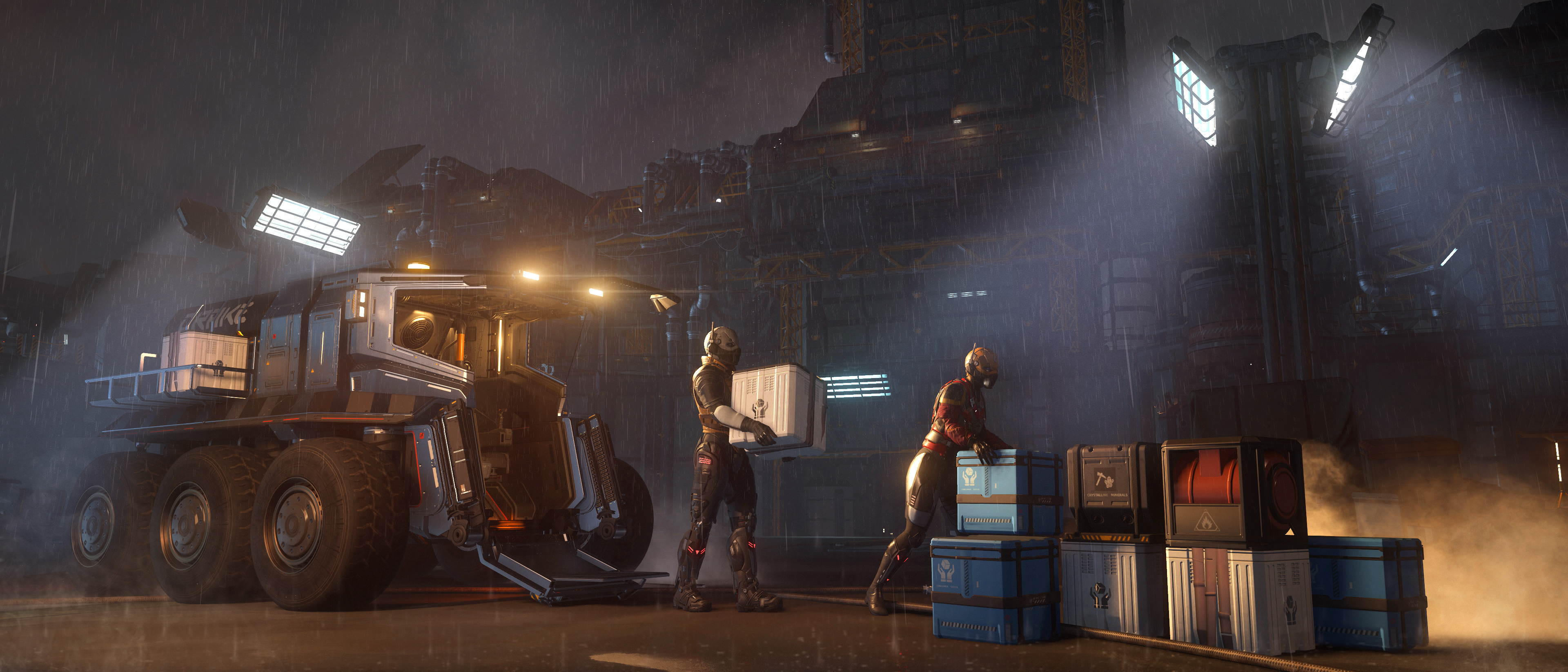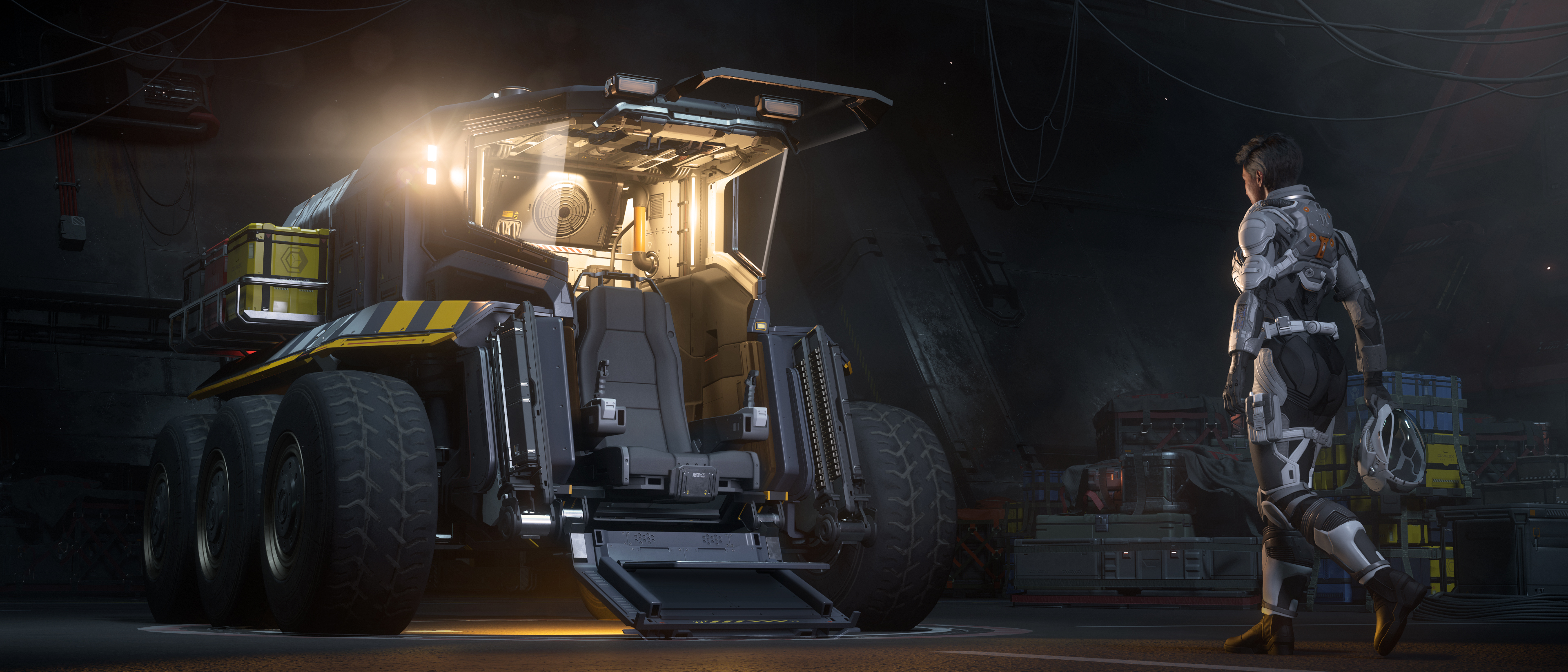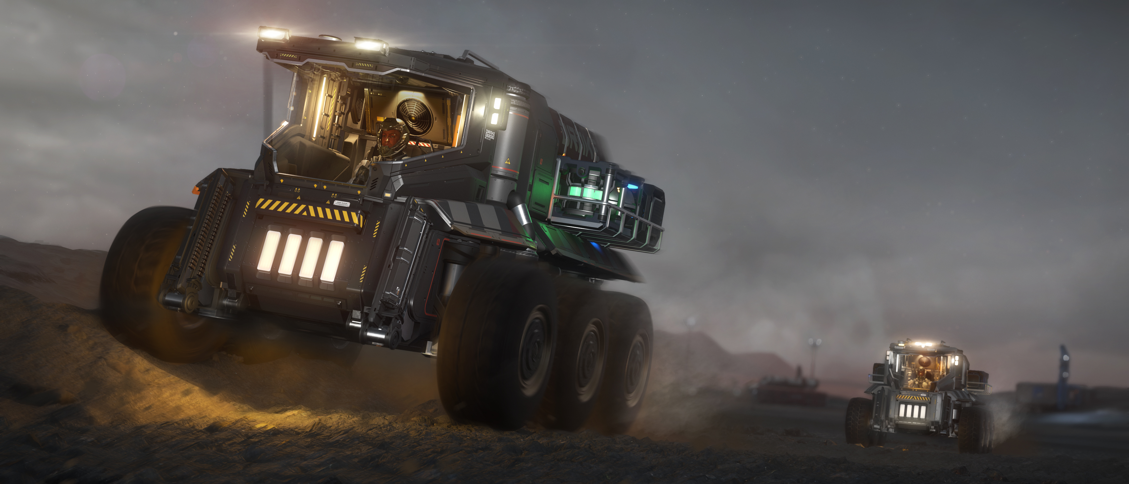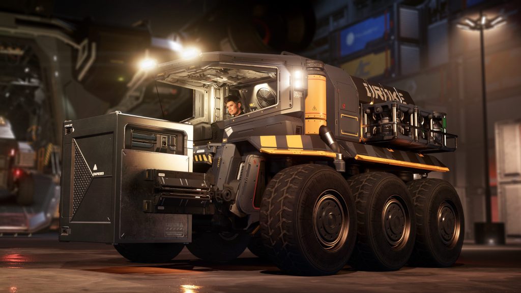 The Drake Mule is an single-seat ground cargo hauler manufactured by Drake Interplanetary. The six-wheeled Drake Mule is a dependable workhouse for all sorts of loading and hauling jobs. Whether transporting cargo over rough terrain or ferrying it onto larger vessels and cargo decks, the Mule sees even the toughest contracts through to the end.