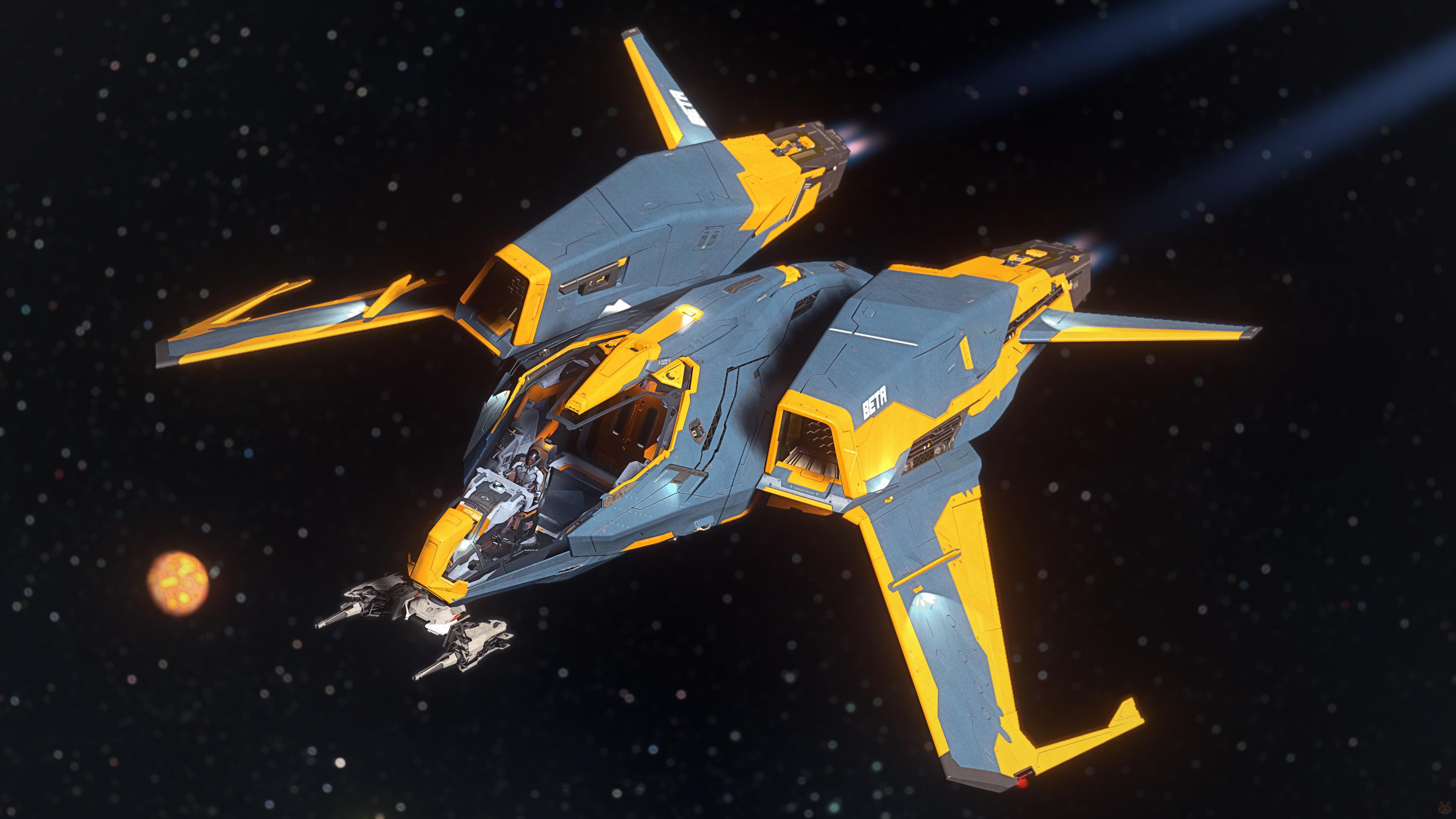The Mustang Beta, with its unprecedented range, is made for long duration flights. The factory standard Tarsus Leaper Jump Engine enables the Beta to travel to the galaxy’s farthest systems with ease, while the ship’s unique Com4T living quarters will make the journey feel like you never left home.
