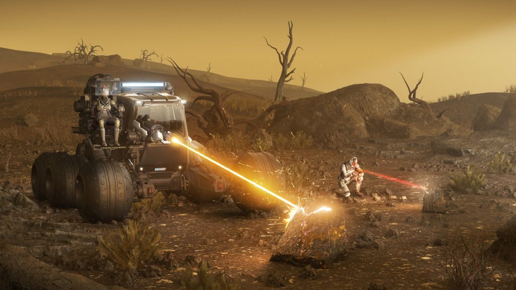 The ROC-DS (Remote Ore Collector Dual Seat) is a two-seat mining ground vehicle manufactured by Greycat Industrial. Compared to the standard ROC, it boasts a slightly more powerful, custom mining head that can be controlled independently from the external seat.